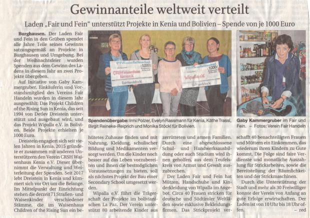 Dort hat sie eine Spende über 1.000,00 € erhalten.