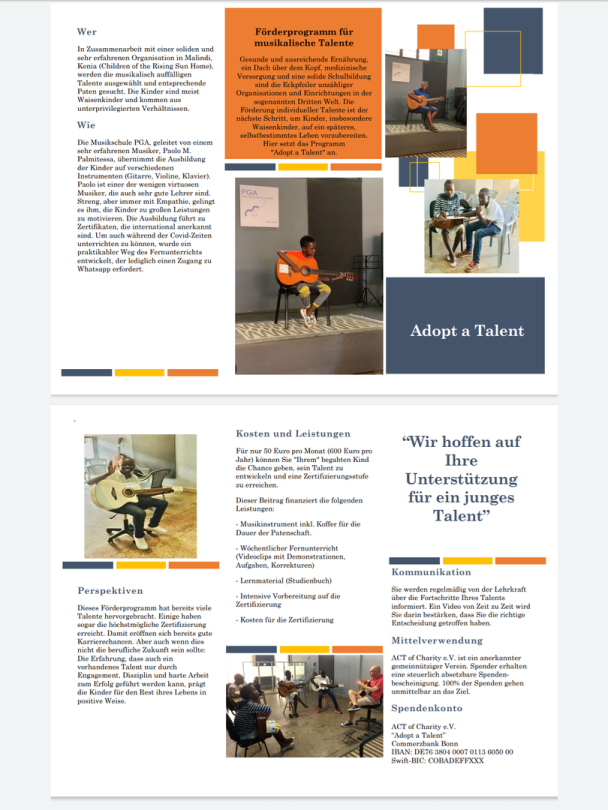 Dieser Unterricht für die Kinder soll onlinemässig stattfinden, immer in der Freizeit. Dazu beschafft ihr Verein ein IPhone mit Internetverbindung und der italienische Musiklehrer aus Malindi unterrichtet.