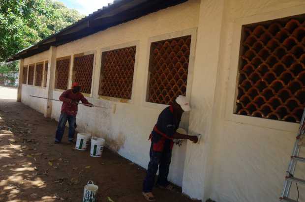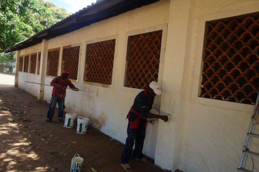 Die Schule wird außen und innen gestrichen.