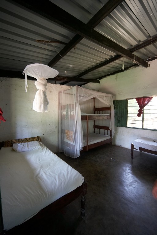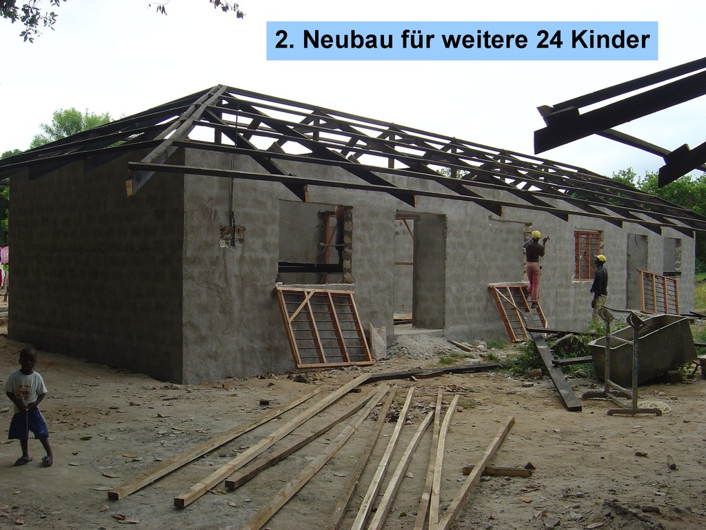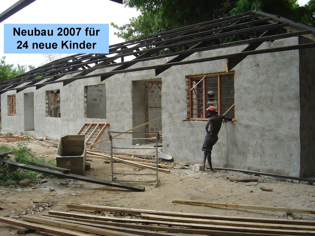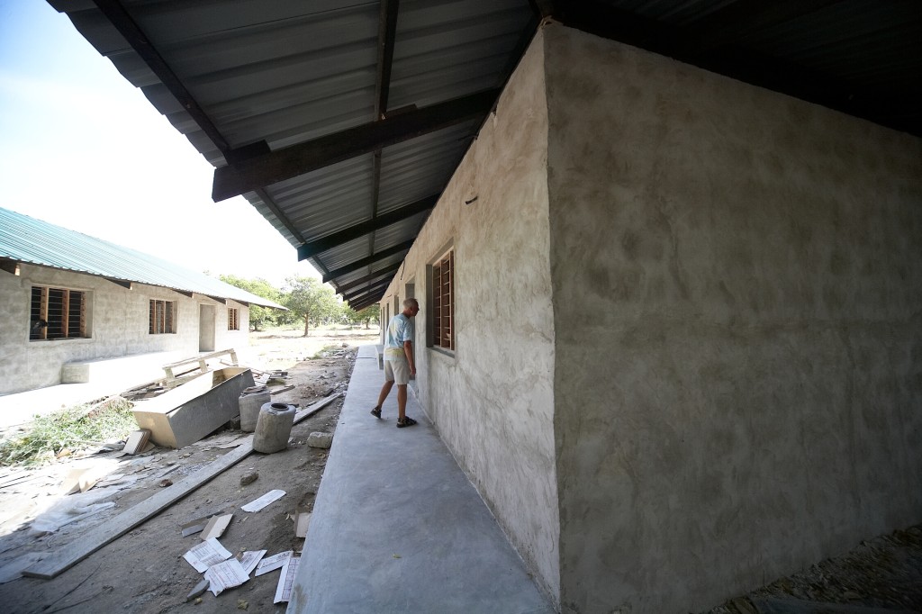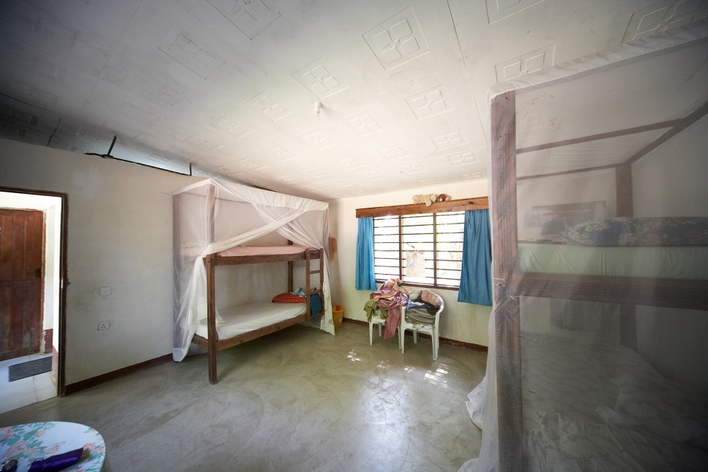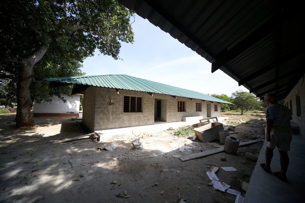Es handelt sich hierbei nicht um afrikanische Lehmhütten, sondern um Permanentbauten aus Korallengestein und Zement mit Blechdach. Die ersten Räumlichkeiten waren Schlafunterkünfte für Jungen und